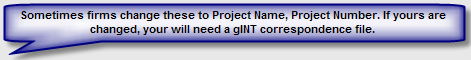 To "fix" this, something has to be done to tell gINT that when it sees the field name "Project" in the external file, that it is supposed to put the data it finds there into its gINT target’s "Project Name" field. That "something" is a gINT Correspondence File which is made using gINT's Correspondence File Utility.